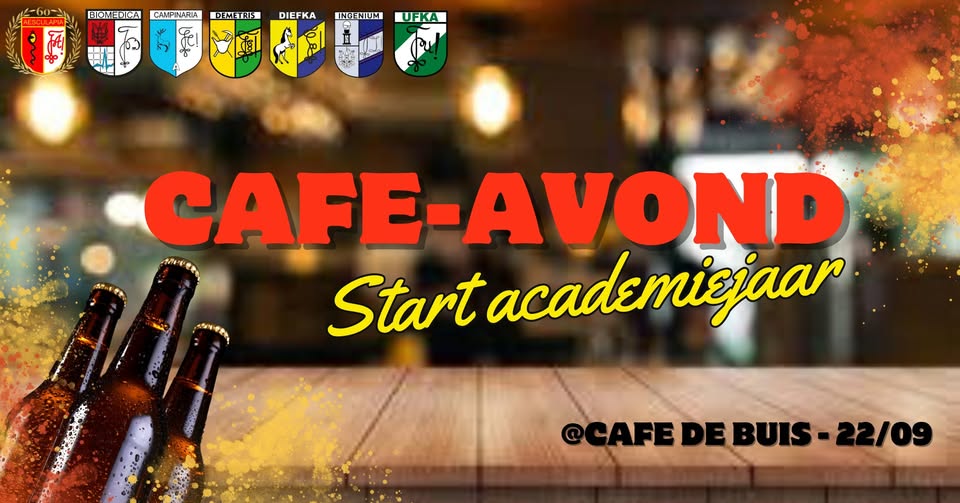 Daar is ‘ie weer! Het nieuwe academiejaar staat voor de deur en dat vieren we graag met jullie! Kom samen met ons iets lekkers drinken en deel de zotste verhalen over jullie vakantie. Iedereen is van harte welkom in Café De Buis op maandag 22 september om het nieuwe, onvergetelijke jaar met de juiste energie te starten.